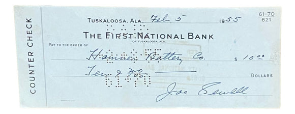 Joe Sewell Cleveland Signed February 5 1955 Bank Check BAS