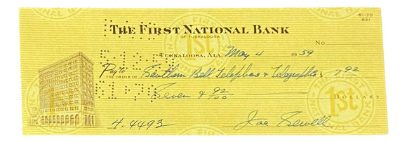 Joe Sewell Cleveland Signed May 4 1959 Bank Check BAS