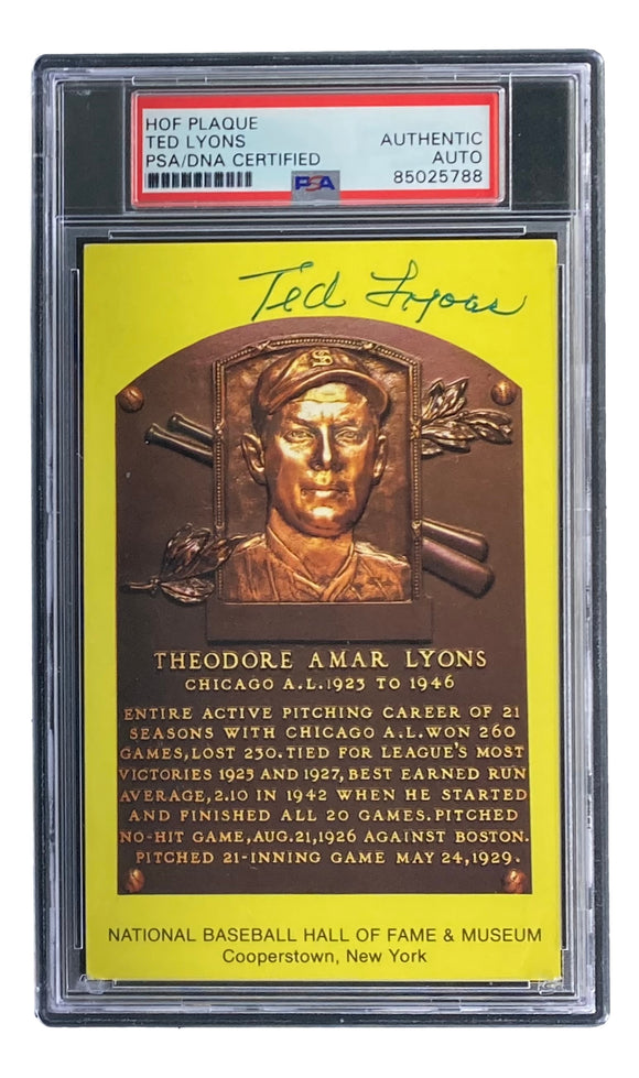 Ted Lyons Signed 4x6 Chicago White Sox HOF Plaque Card PSA/DNA 85054842