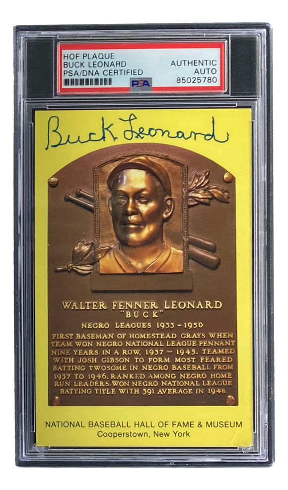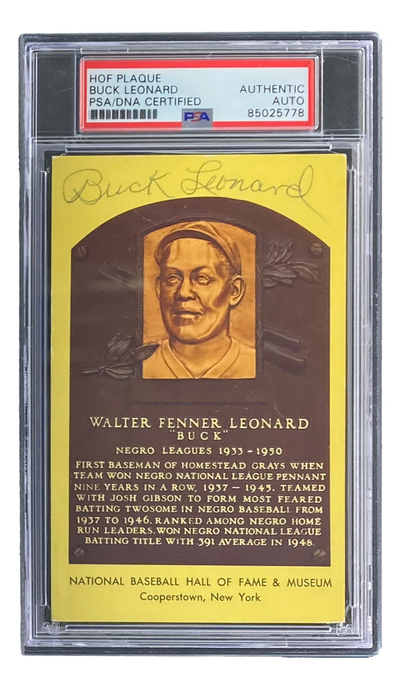 Buck Leonard Signed 4x6 Homestead Grays HOF Plaque Card PSA/DNA 85025785