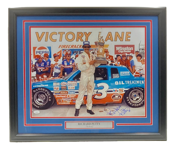 Richard Petty Signed 16x20 Nascar Double Trophy Photo JSA Hologram