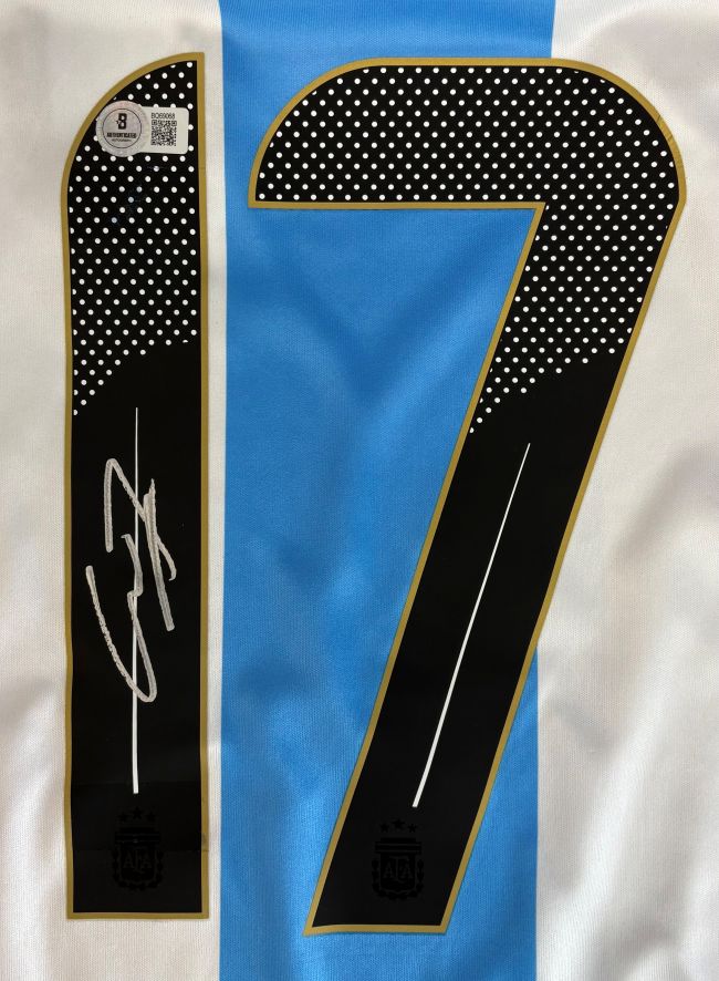 Featured is a Alejandro Garnacho signed Argentina Adidas soccer jersey. This jersey was hand signed by Garnacho and comes with the Beckett hologram and certificate of authenticity. Jersey size may vary. This jersey would make a great addition to any sports memorabilia collection!.