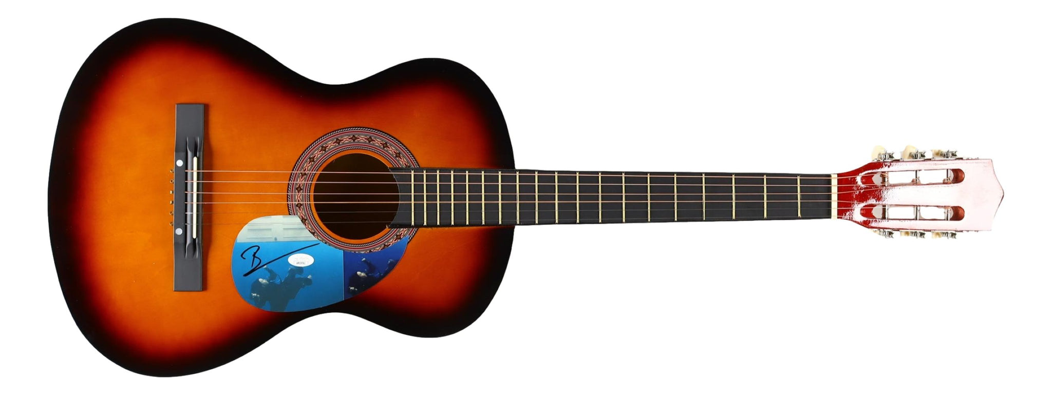 Featured is a Billie Eilish signed 38" acoustic guitar. This guitar has been hand signed by Eilish and comes with the JSA hologram. This guitar would make a great addition to any entertainment memorabilia collection!