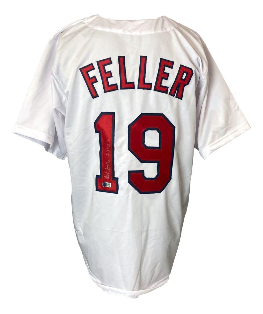 Bob Feller Cleveland Signed White Baseball Jersey 107.9 MPH BAS