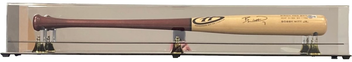 Featured is a Bobby Witt Jr signed Homewood Game Model baseball bat. This bat has been hand signed by Witt and comes with the Beckett hologram and certificate of authenticity. Included with this bat is a deluxe acrylic display case. This bat would make a great addition to any sports memorabilia collection!.