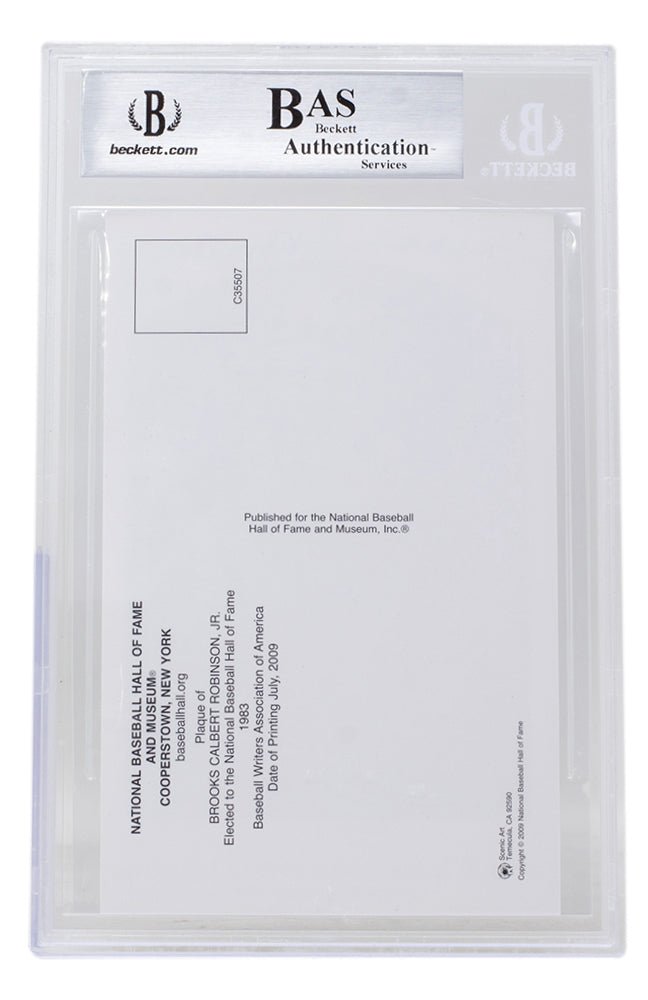 Brooks Robinson Signed Slabbed Orioles Hall of Fame Plaque Postcard BAS 105