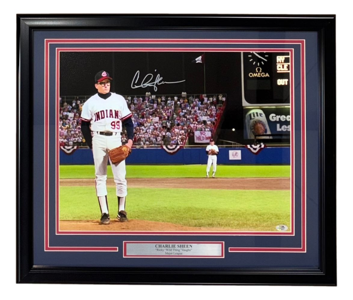 Featured is a Charlie Sheen signed 16x20 Major League Photo. This photo has been hand signed by Sheen and comes with the PSA witnessed hologram. This photo has been professionally framed and matted and is approximately 22x27. This item would make a great addition to any sports memorabilia collection...