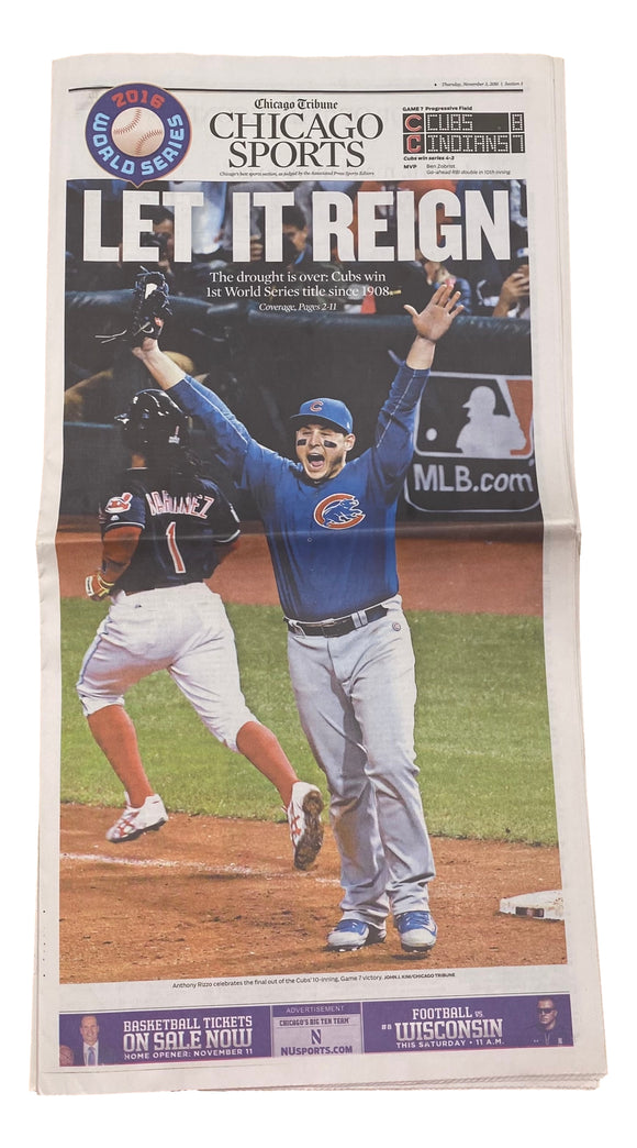 Featured is a Chicago Cubs Chicago Tribune November 3, 2016. This Newspaper would make a great addition to any sports memorabilia collection!