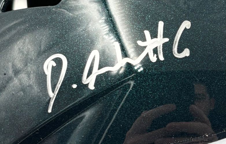 Featured is a Devonta Smith signed Philadelphia Eagles full size speed replica helmet. This helmet has been hand signed by Smith and comes with the Fanatics hologram and certificate of authenticity. Included with this helmet is a deluxe acrylic display case. This helmet would make a great addition to any sports memorabilia collection!.