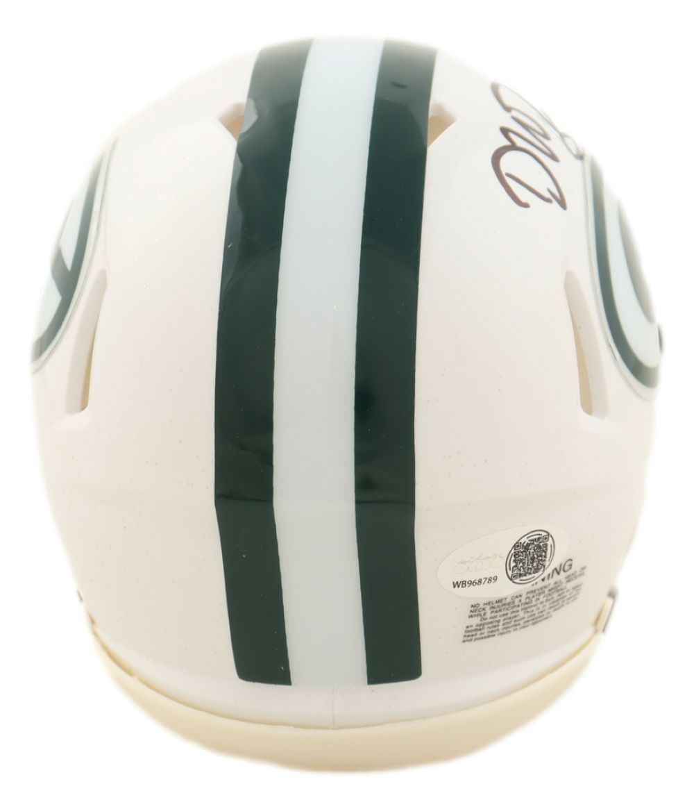 Featured is a Dontayvion Wicks signed Green Bay Packers mini speed helmet. This helmet has been hand signed by Wicks and comes with the JSA hologram. This helmet would make a great addition to any sports memorabilia collection!