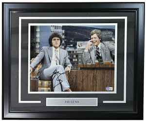 Featured is a Jay Leno signed 11x14 photo. This photo has been hand signed by Leno and comes with the Beckett hologram and certificate of authenticity. This photo has been professionally framed and matted and is approximately 16x20. This photo would make a great addition to any sports memorabilia collection!.