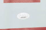 Featured is a Jim Kelly signed Buffalo Bills blue Mitchell & Ness football jersey. This jersey was hand signed by Jim Kelly in the presence of a JSA authentication representative. Included with the jersey is a JSA witnessed hologram and certificate of authentication. This jersey would make a great addition to any sports memorabilia collection..