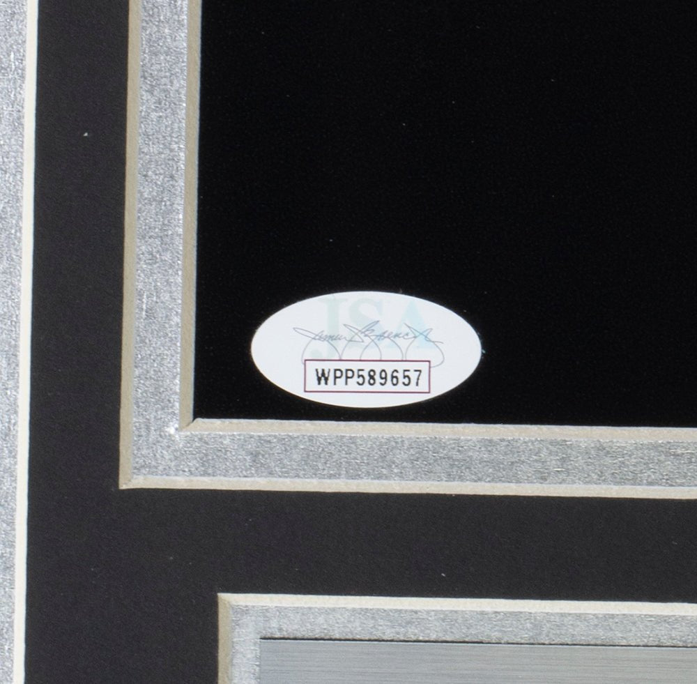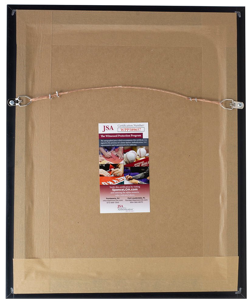 Featured is a Joe Elliott signed framed 8x10 Def Leppard photo. This photo was hand signed by Joe Elliott and authenticated by JSA authentication services. Included with the photo is a JSA hologram and certificate of authentication. Brand new professional framing featuring double matting and engraved nameplate. The frame measures approximately 11x14 in total size, and it is ready for display. This item would make a great addition to any sports memorabilia collection..