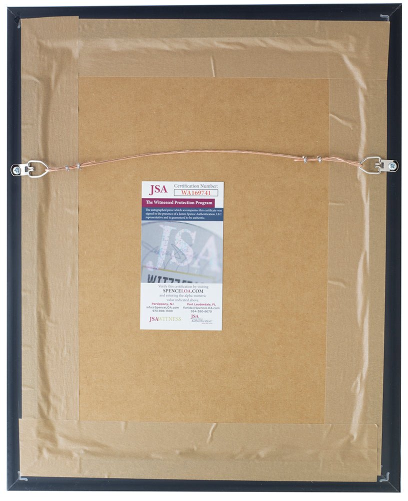 Featured is a Joe Elliott signed framed 8x10 Def Leppard photo. This photo was hand signed by Joe Elliott and authenticated by JSA authentication services. Included with the photo is a JSA hologram and certificate of authentication. Brand new professional framing featuring double matting and engraved nameplate. The frame measures approximately 11x14 in total size, and it is ready for display. This item would make a great addition to any sports memorabilia collection..