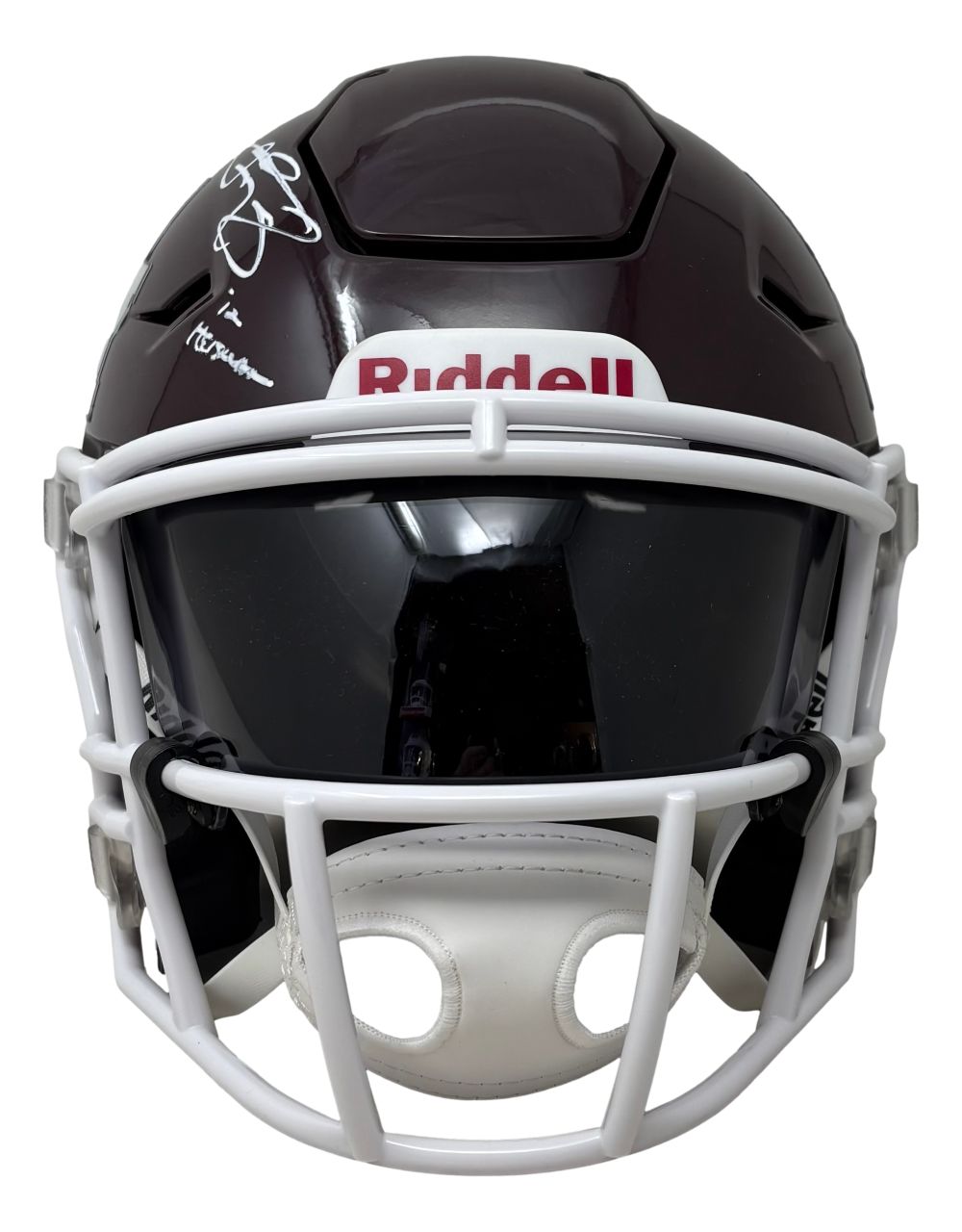 Featured is a Johnny Manziel signed Texas A&M mid-size authentic SpeedFlex helmet, inscribed "12 Heisman". This helmet has been hand signed by Manziel and comes with the Beckett witnessed hologram and certificate of authenticity. This helmet would make a great addition to any sports memorabilia collection!