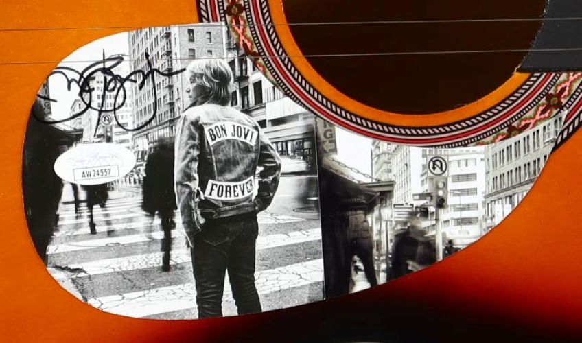 Featured is a Jon Bon Jovi signed 38" acoustic guitar. This guitar has been hand signed by Bon Jovi and comes with the JSA hologram. This guitar would make a great addition to any entertainment memorabilia collection!