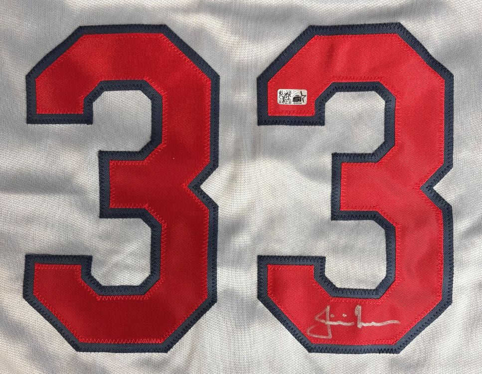 Featured is a Justin Morneau signed custom baseball jersey. This jersey has been hand signed by Morneau and comes with the Sports Integrity hologram and certificate of authenticity. This jersey features professionally sewn letters and numbers and is size XL. This jersey has no team tags or emblems and is intended as a sports collectible. This jersey would make a great addition to any sports memorabilia collection!.