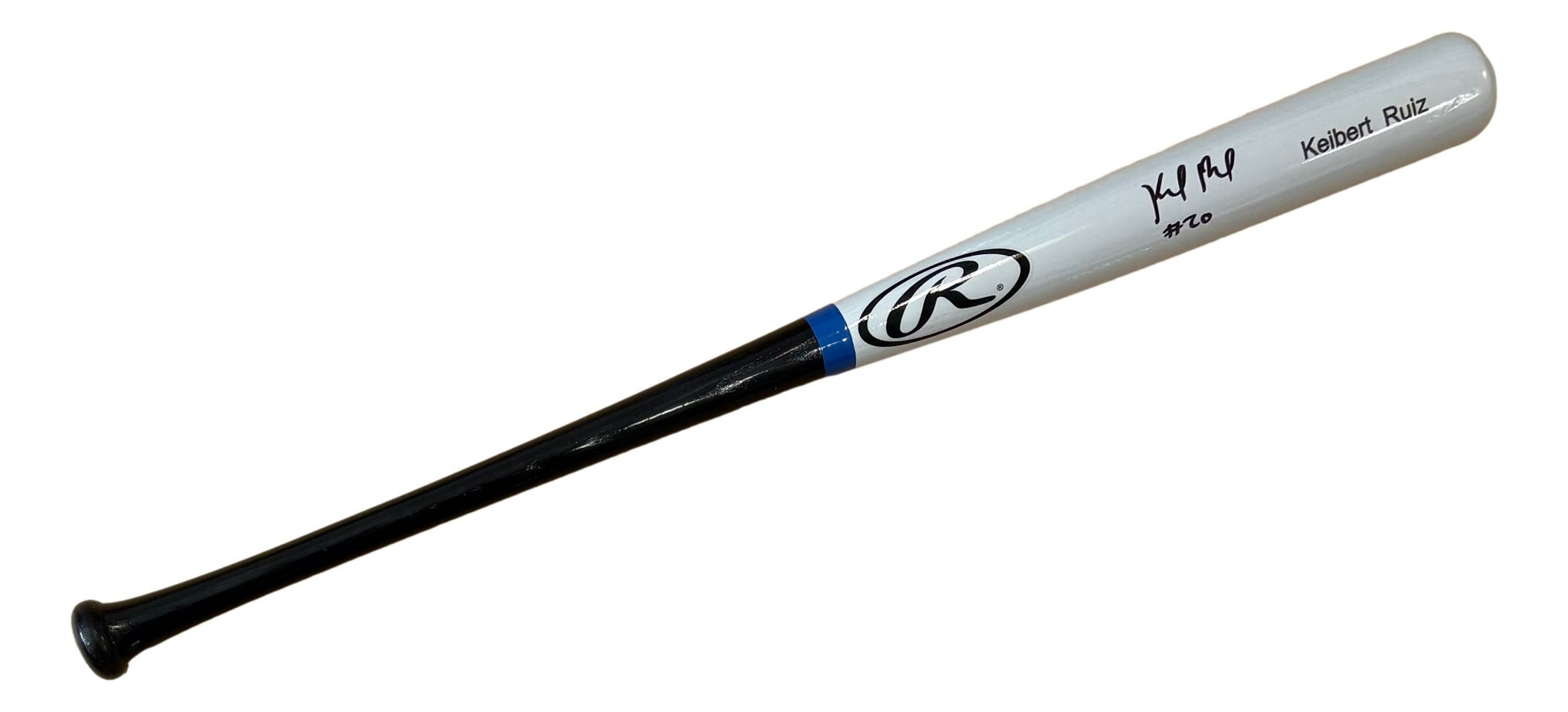 Featured is a Keibert Ruiz signed Rawlings baseball bat. This bat has been hand signed by Ruiz and comes with the Beckett hologram and certificate of authenticity. This bat would make a great addition to any sports memorabilia collection!.