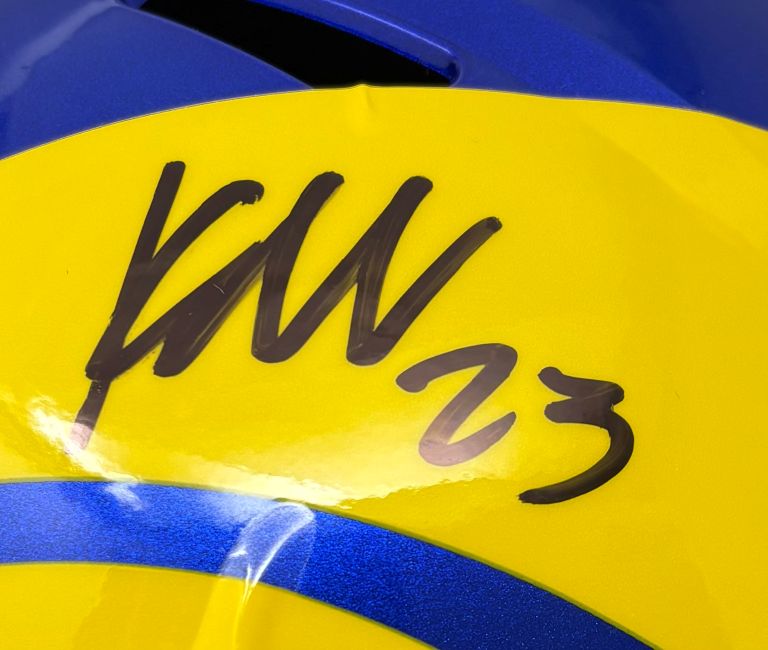 Featured is a Kyren Williams signed Los Angeles Rams full size replica speed helmet. This helmet has been hand signed by Williams and comes with the Beckett hologram and certificate of authenticity. This helmet would make a great addition to any sports memorabilia collection!.