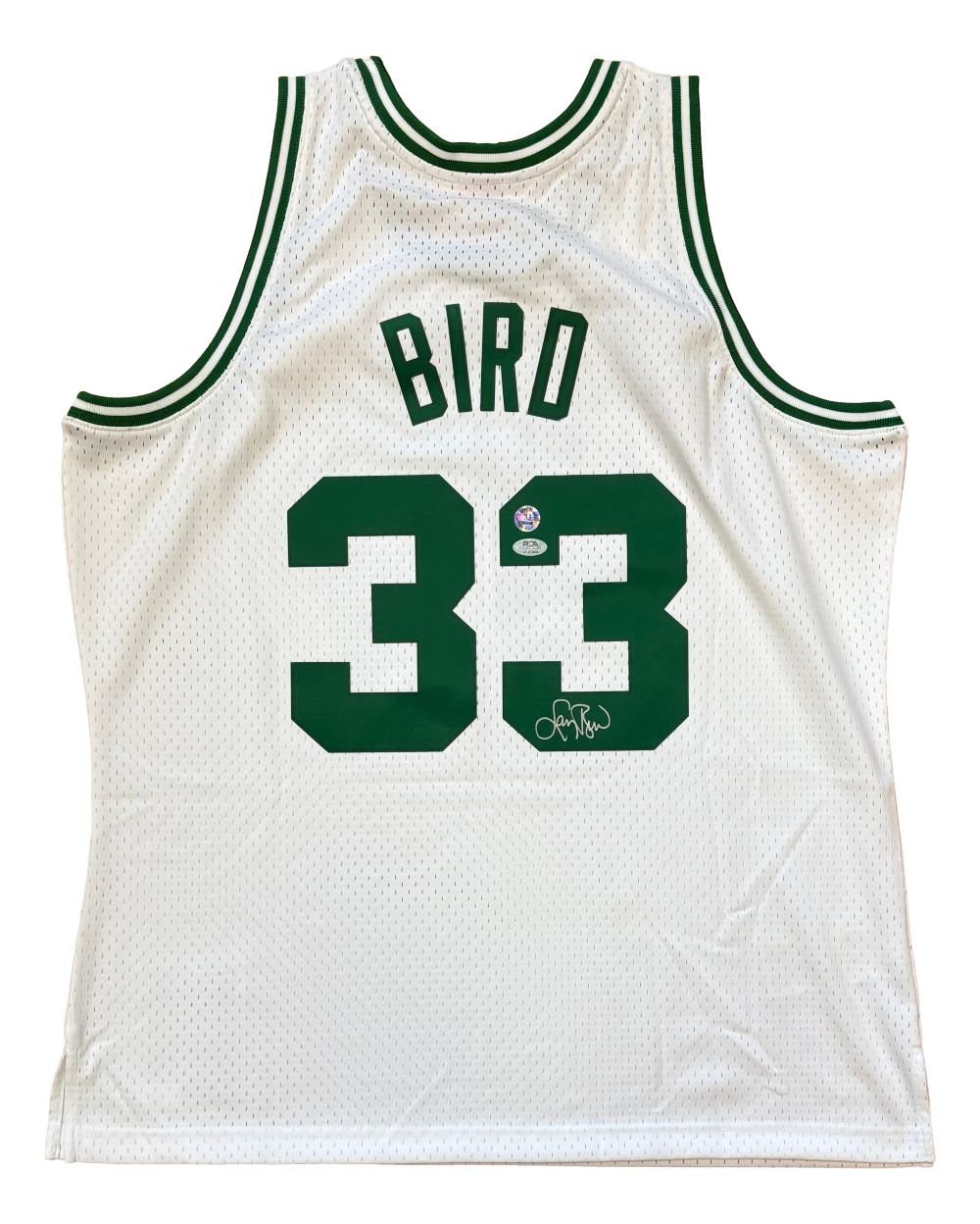 Featured is a Larry Bird signed Boston Celtics Mitchell & Ness Hardwood Classics Swingman jersey. This jersey has been hand signed by Bird and comes with the PSA/DNA witnessed hologram, along with the Bird exclusive hologram. Jersey size may vary. This jersey would make a great addition to any sports memorabilia collection!.