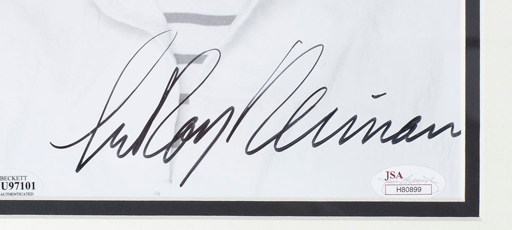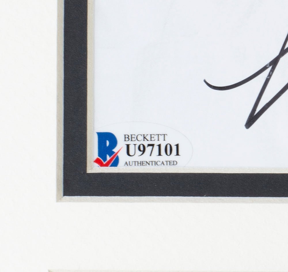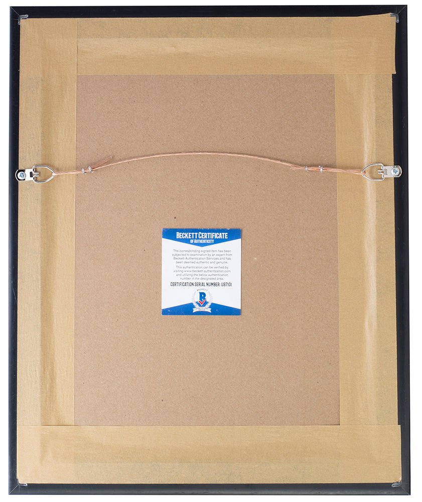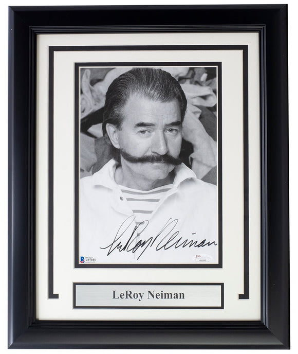 Featured is an LeRoy Neiman signed framed 8x10 artist photo. This photo was hand signed by LeRoy Neiman and authenticated by Beckett authentication services. Included with the photo is a Beckett hologram and certificate of authentication. Brand new professional framing featuring double matting and engraved nameplate. The frame measures approximately 11x14 in total size, and it is ready for display. This item would make a great addition to any sports memorabilia collection..