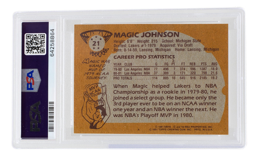 Magic Johnson 1981 Los Angeles Lakers Topps Basketball Card #21 PSA NM 7