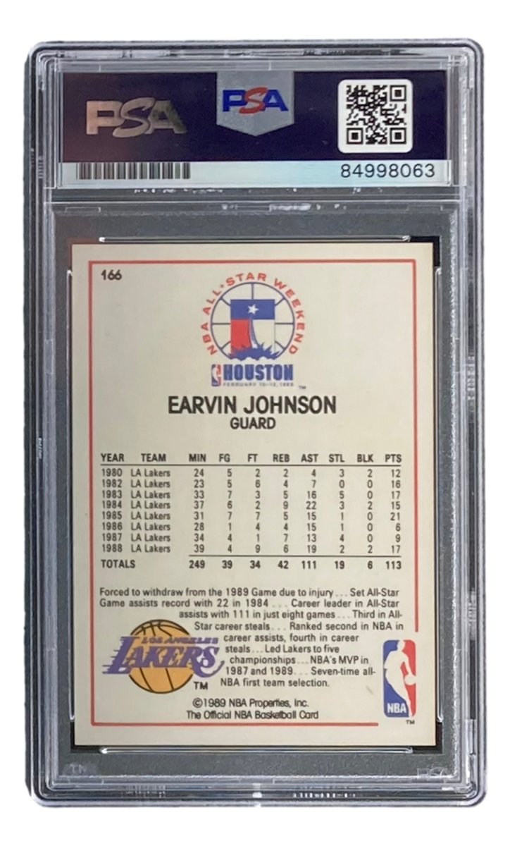 Featured is a Magic Johnson Los Angeles Lakers signed 1989 NBA Hoops #166 Trading Card. This card has been hand signed by Johnson and has been authenticated and encapsulated by PSA. This card would make a great addition to any sports memorabilia collection!.