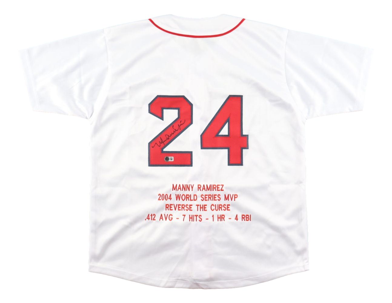 Manny Ramirez Boston Signed White 2004 WS MVP Stat Baseball Jersey BAS
