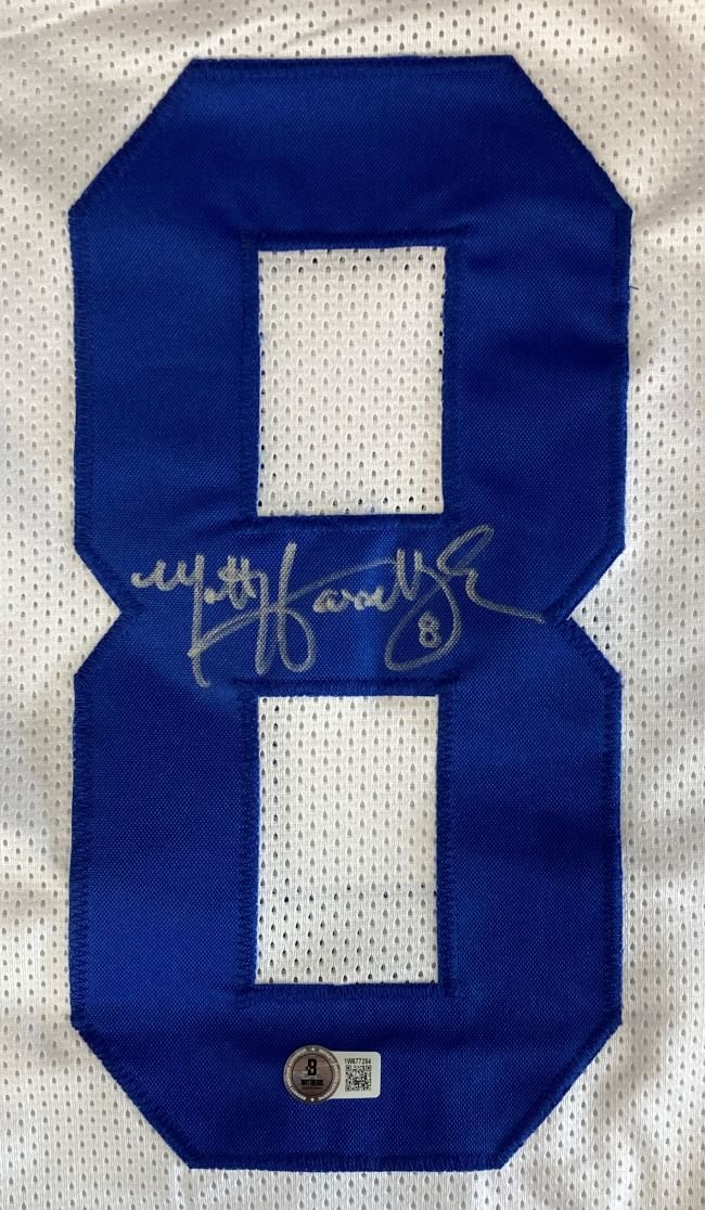 Featured is a Matt Hasselbeck signed custom football jersey. This jersey has been hand signed by Hasselbeck and comes with the Beckett hologram and certificate of authenticity. This jersey features professionally sewn letters and numbers and is size XL. This jersey has no team tags or emblems and is intended as a sports collectible. This jersey would make a great addition to any sports memorabilia collection!.