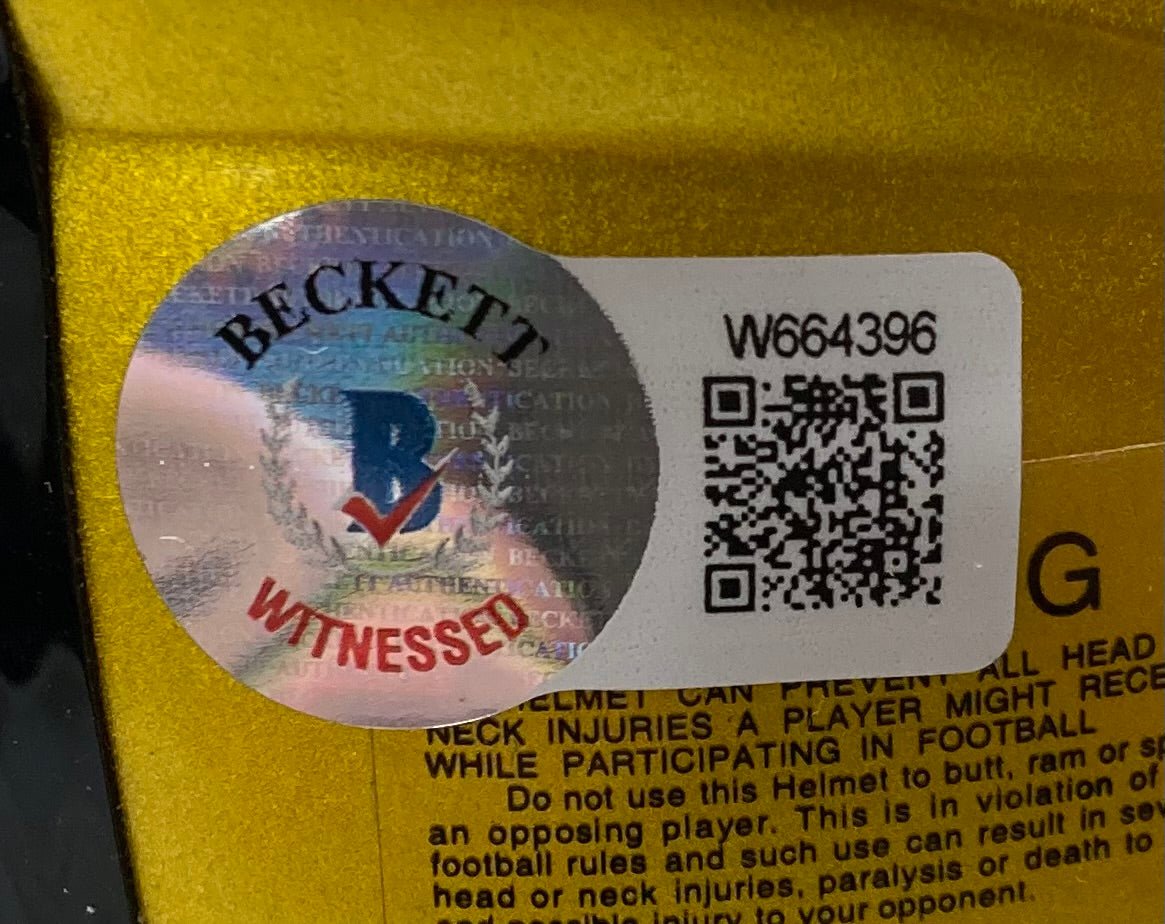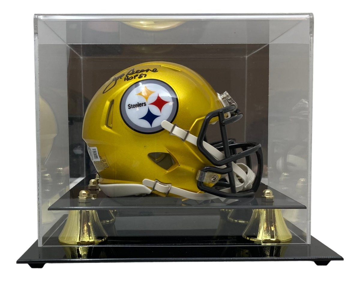 Featured is a Joe Greene signed Pittsburgh Steelers mini speed helmet, inscribed "HOF 87". This helmet has been hand signed by Greene and comes with the Beckett witnessed hologram and certificate of authenticity. Included with this helmet is a deluxe acrylic display case. This helmet would make a great addition to any sports memorabilia collection!.