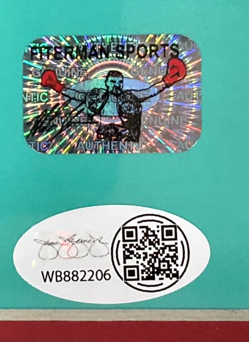 Featured is a Mike Tyson signed 16x20 Mike Tyson Punch Out video game photo. This photo has been hand signed by Tyson and comes with the JSA witnessed QR hologram. This photo has been professionally framed and matted and is approximately 22x27. This photo would make a great addition to any sports memorabilia collection!