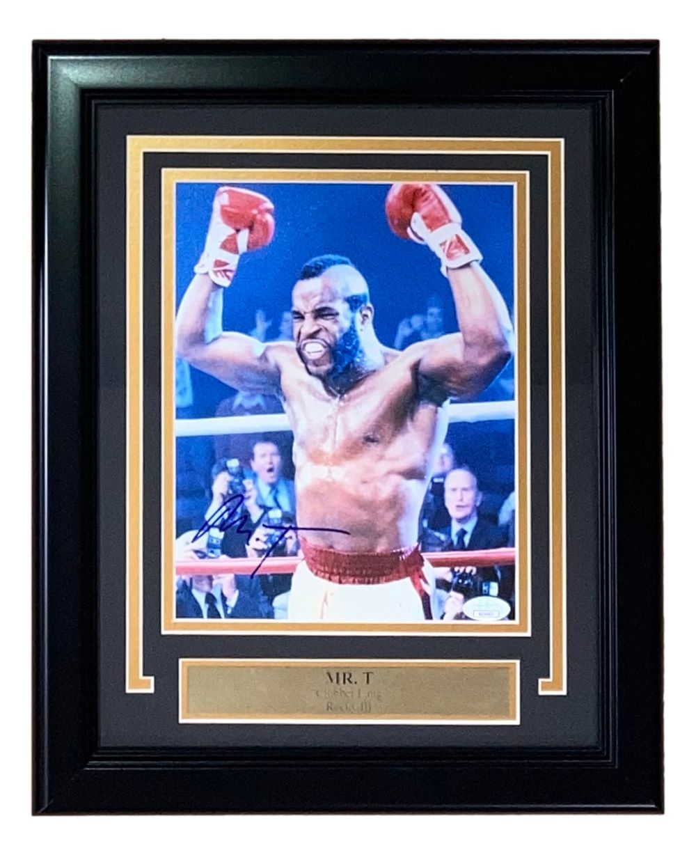 Featured is a Mr. T signed 8x10 Clubber Lang photo. This photo has been hand signed by Mr. T and comes with the JSA hologram and certificate of authenticity. This photo has been professionally framed and matted and is approximately 11x14. This photo would make a great addition to any sports memorabilia collection.
