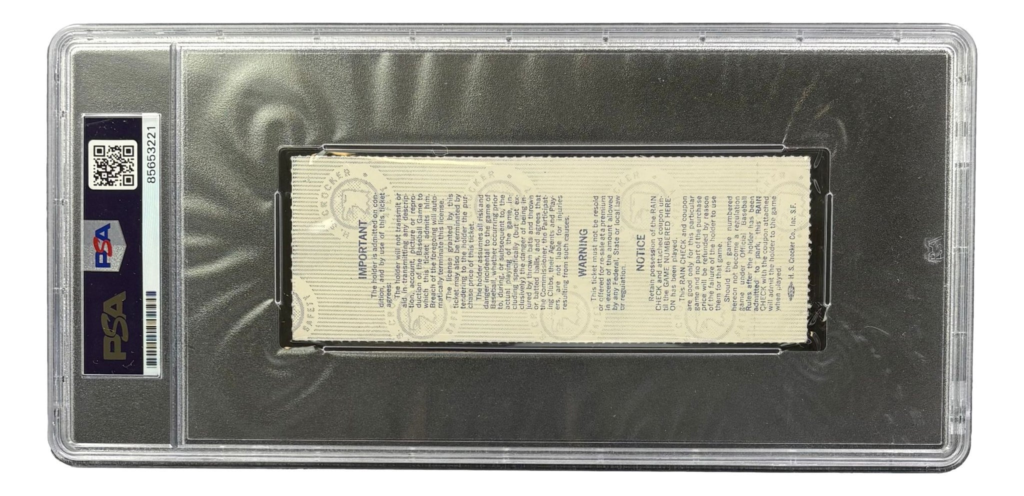 Featured is a Reggie Jackson signed 1978 World Series game 6 ticket. This ticket has been hand signed by Jackson and has been authenticated and encapsulated by PSA, receiving an autograph grade of Gem MT 10. This ticket would make a great addition to any sports memorabilia collection.