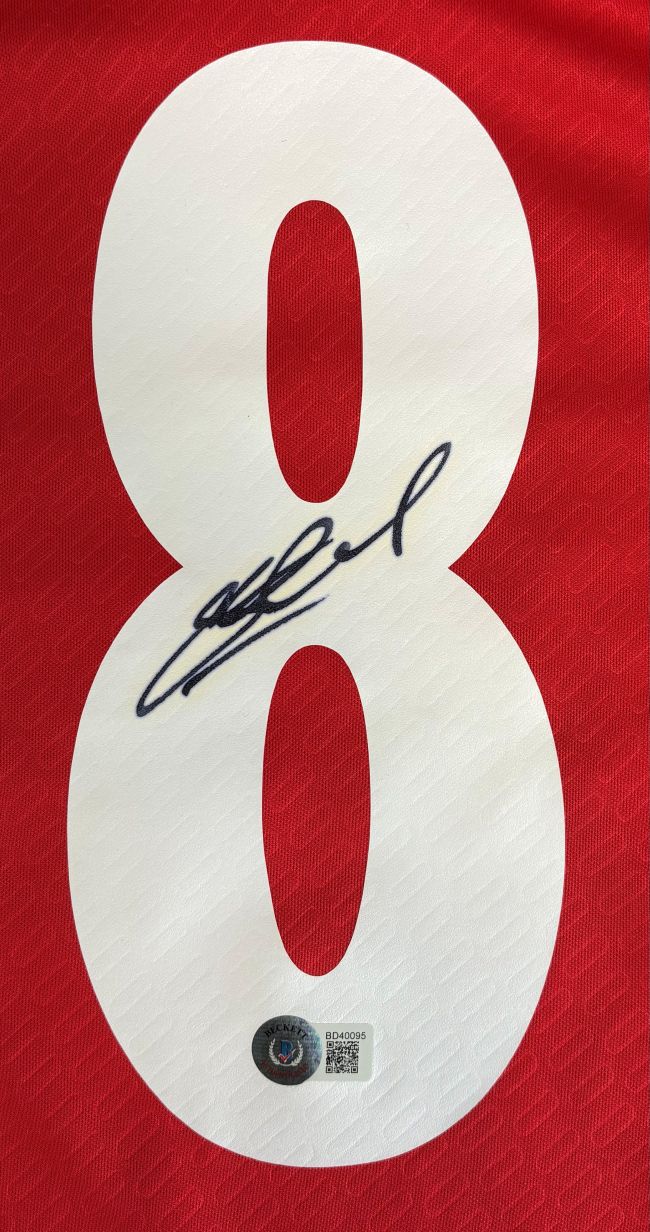 Featured is a Steven Gerrard signed Liverpool FC Reebok soccer jersey. This jersey was hand signed by Gerrard and comes with the Beckett hologram and certificate of authenticity. Jersey size may vary. This jersey would make a great addition to any sports memorabilia collection!