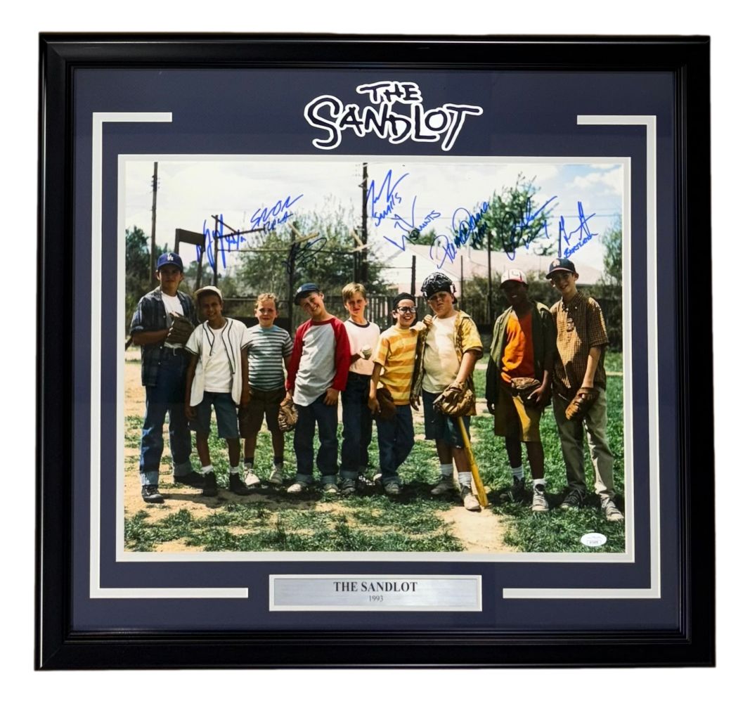Featured is a multi signed The Sandlot 16x20 with 8 signatures including Patrick Renna, Grant Gelt, Chauncy Leopardi, Tom Guiry, Shane Obedzinski, Victor DiMattia, Marty York, and Brandon Adams. This photo comes with the JSA hologram and certificate of authenticity. This photo has been professionally framed and matted and is approximately 24x30..