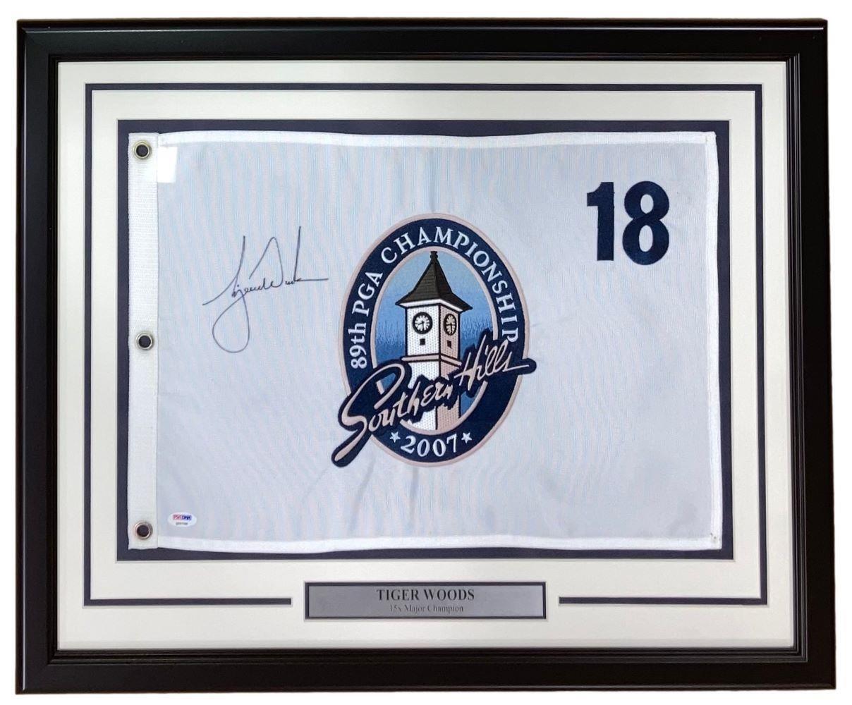 Tiger Woods Signed Framed 2007 PGA Championship Flag PSA/DNA Hologram
