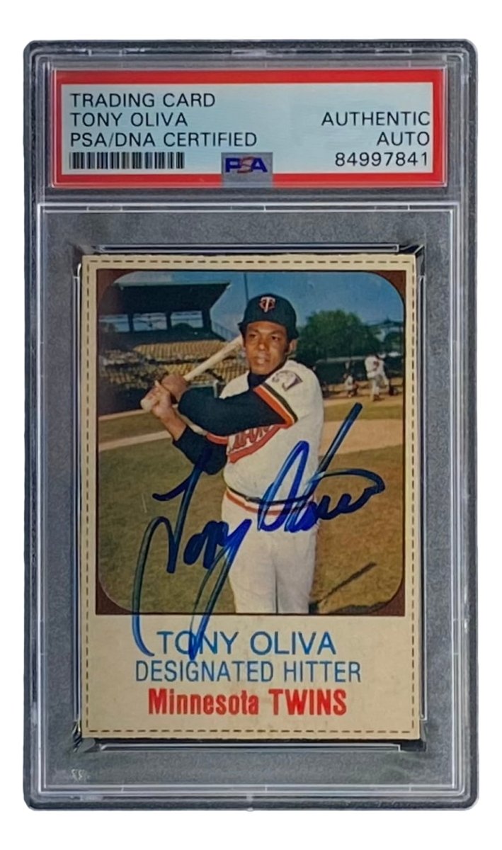 Featured is a Tony Oliva Minnesota Twins signed 1975 Hostess #20 trading card. This card has been hand signed by Oliva and has been authenticated and encapsulated by PSA. This card would make a great addition to any sports memorabilia collection!.