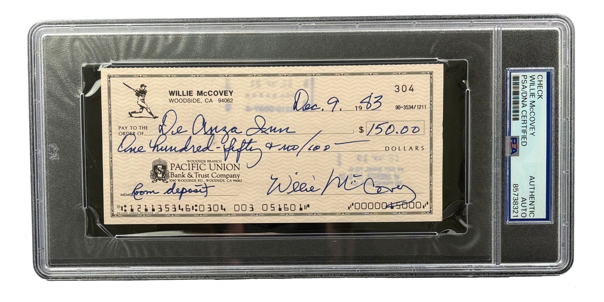 Featured is a Willie McCovey signed bank check. This check has been hand signed by McCovey and has been slabbed and authenticated by PSA/DNA. This check would make a great addition to any sports memorabilia collection!.