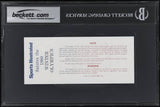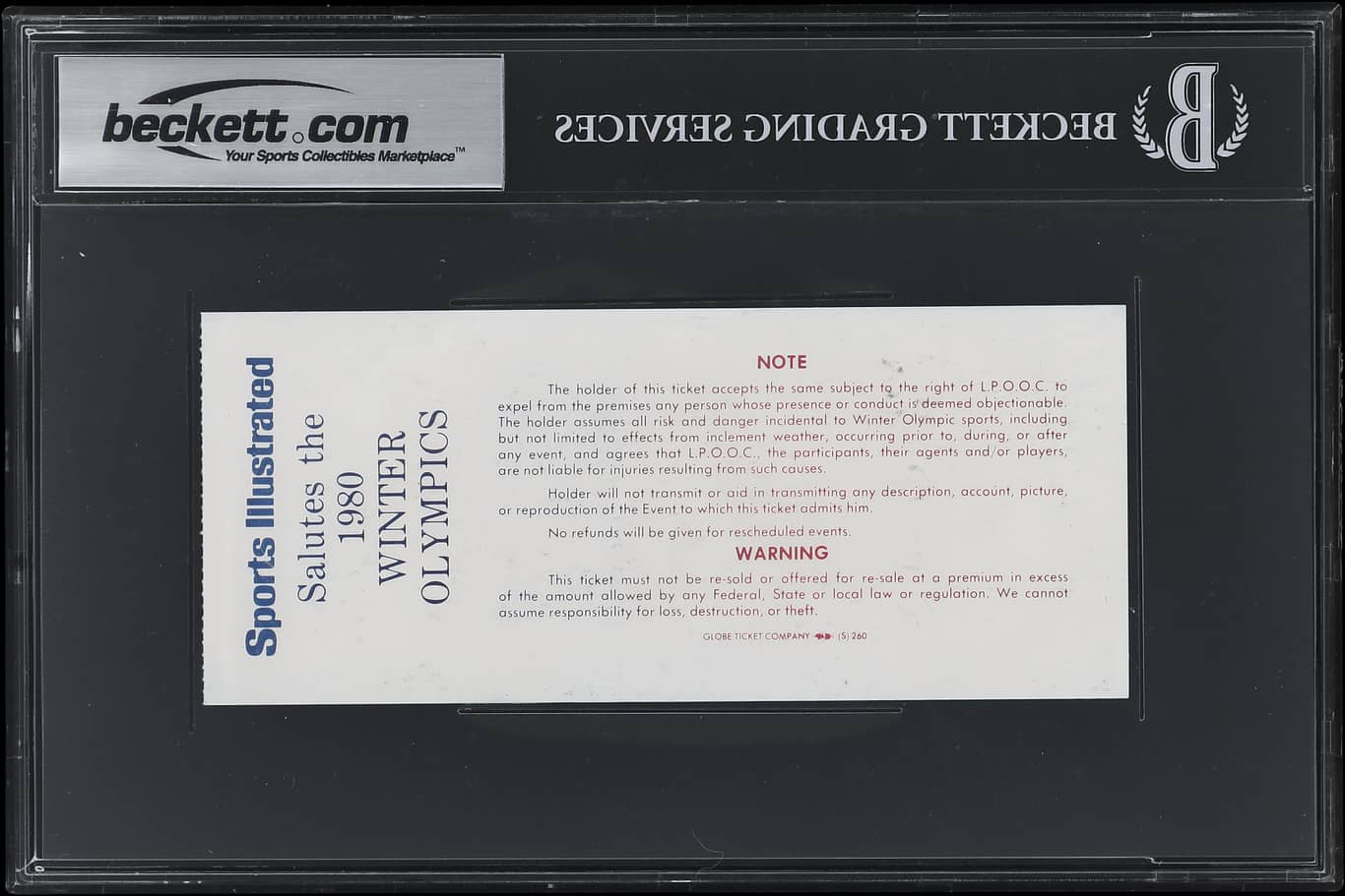 Featured is a 1980 USA Hockey team signed Romania game ticket from February 18, 1980. On this day, Team USA defeated Romania 7-2. This ticket has been hand signed by Jim Craig, Mike Eruzione, Buzz Schneider, Craig Patrick, Jack O'Callahan, Rob McClanahan, Neal Broten, Dave Silk, Phil Verchota, Steve Christoff, Mark Johnson, John Harrington, Eric Strobel, Dave Christian, Mark Pavelich, Mike Ramsey, Bill Baker, Ken Morrow, Mark Wells, and Steve Janaszak. This ticket has been authenticated and encapsulated by Beckett Grading Services, receiving an autograph grade of 10. This ticket would make a great addition to any sports memorabilia collection..
