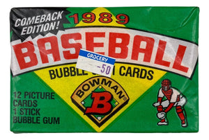 Featured is a 1989 Bowman MLB Baseball 12 Card Wax Pack. This pack contains 12 cards and 1 piece of gum. This gum is over 30 years old and is not edible, please do not eat..