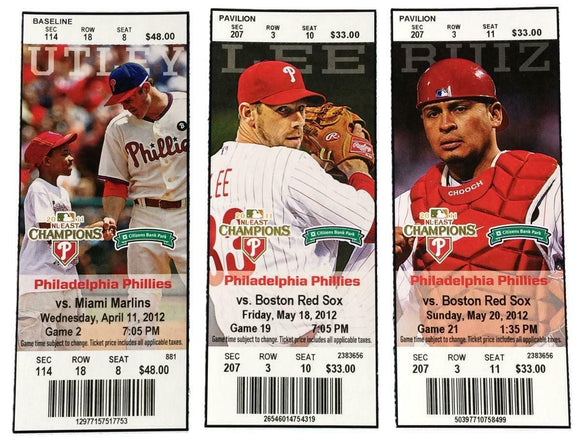 2012 Philadelphia Phillies Lot of 3 Tickets