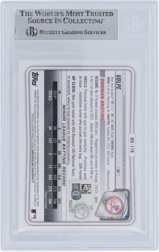 Anthony Volpe Signed 2020 Bowman Draft #BD178 Yankees Rookie Card BAS Witnessed