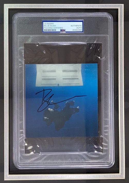 Featured is a Billie Eilish signed Hit Me Hard And Soft CD insert. This insert has been hand signed by Eilish and has been authenticated and encapsulated by PSA. This insert has been professionally framed and matted with an 11x14 photo and is approximately 22x32. This insert would make a great addition to any entertainment memorabilia collection!