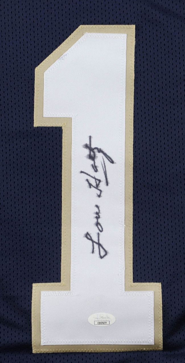 Coach Lou Holtz Notre Dame Signed Navy Blue Football Jersey JSA Hologram