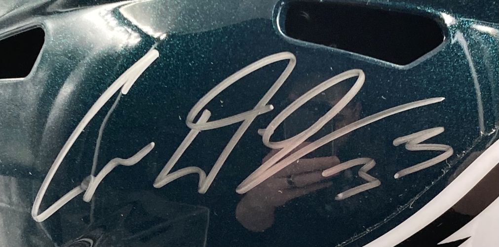 Featured is a Cooper DeJean signed Philadelphia Eagles full size replica speed helmet. This helmet has been hand signed by DeJean and comes with the Fanatics hologram and certificate of authenticity. Included with this helmet is a Super Bowl 59 LIX deluxe acrylic display case. This helmet would make a great addition to any sports memorabilia collection!.