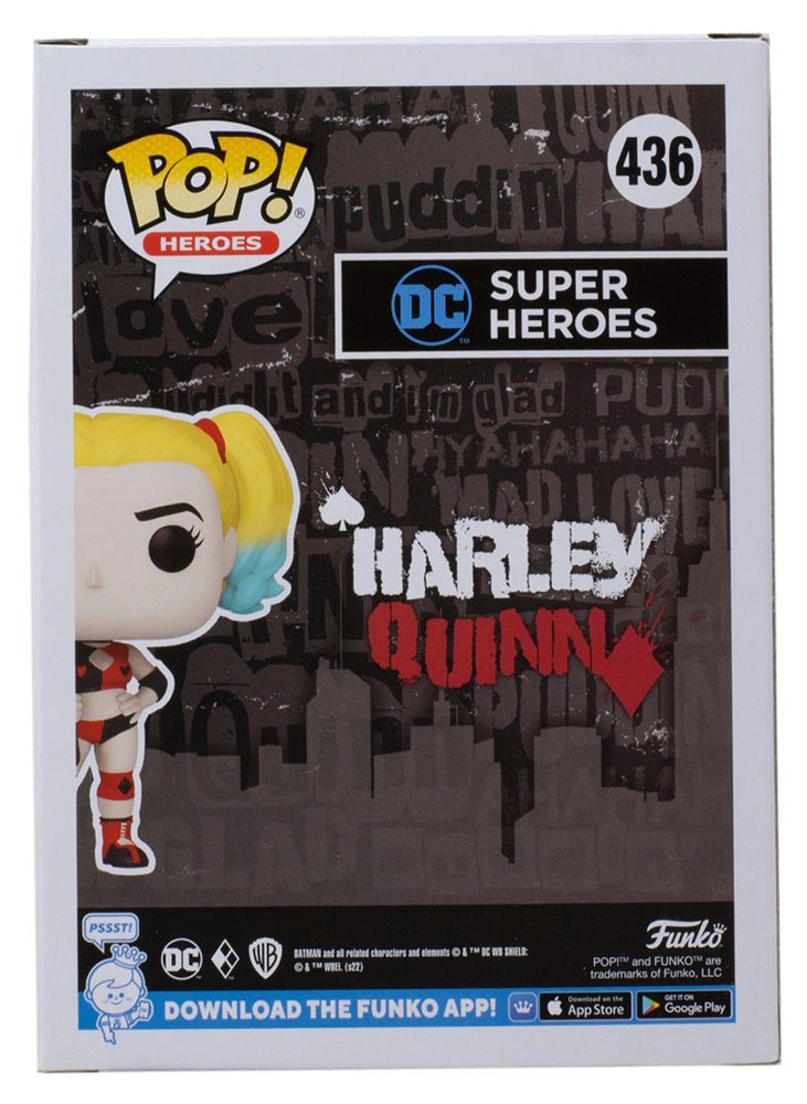 DC Super Heroes Harley Quinn Funko Pop! #436 vinyl figure measures approximately 3 3/4-inches tall. Comes packaged in a window display box..
