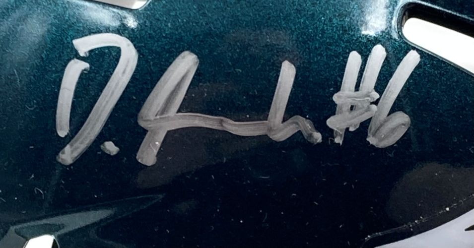 Featured is a Devonta Smith signed Philadelphia Eagles speed mini helmet. This helmet was hand signed by Smith and comes with the Fanatics hologram and certificate of authenticity. Included with this helmet is a Super Bowl 59 LIX acrylic display case that features a mahogany base. This helmet would make a great addition to any sports memorabilia collection!