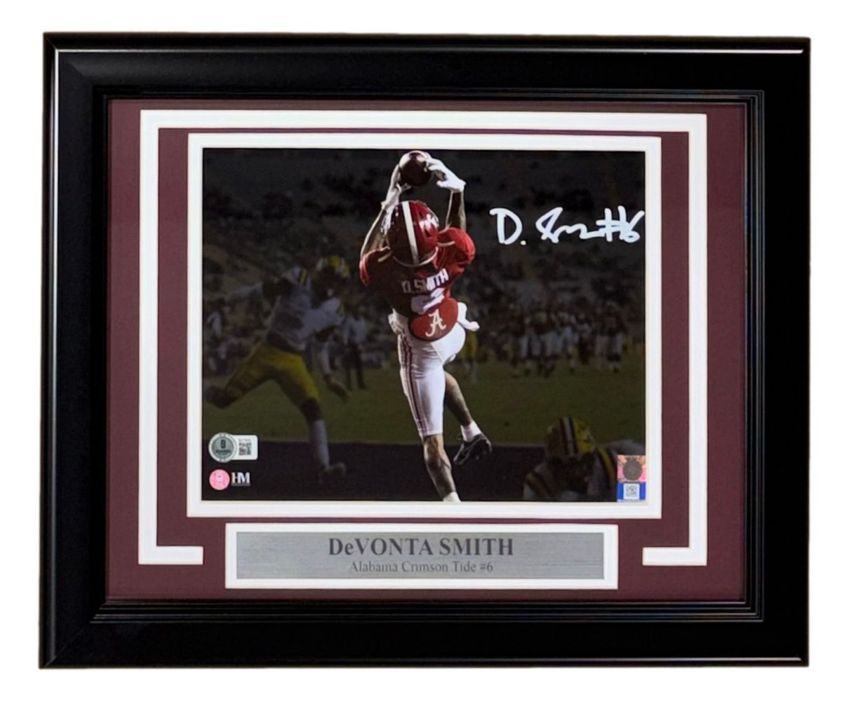 Featured is a Devonta Smith signed 8x10 Alabama Crimson Tide photo. This photo has been hand signed by Smith and comes with the Beckett hologram and certificate of authenticity. This photo has been professionally framed and matted and is approximately 11x14. This photo would make a great addition to any sports memorabilia collection!.