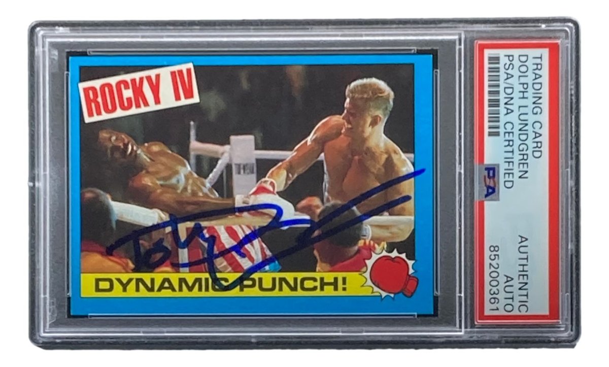 Featured is a Dolph Lundgren signed 1985 Topps #19 Rocky IV Ivan Drago trading card. This card has been hand signed by Lundgren and has been authenticated and encapsulated by PSA. This card would make a great addition to any entertainment memorabilia collection!.