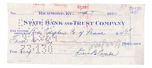 Earle Combs New York Yankees Signed Bank Check BAS